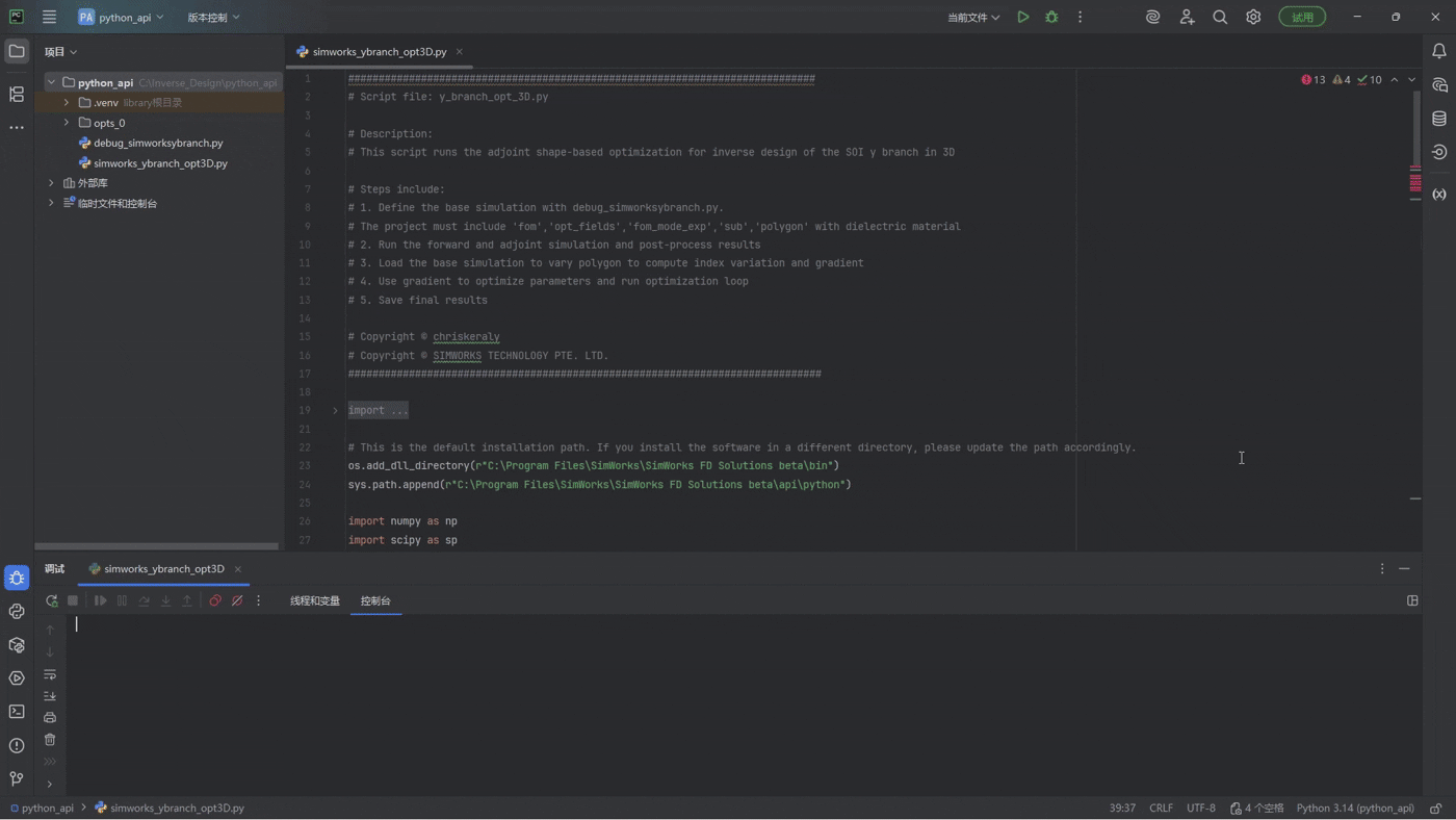 其主要流程为:首先,在软件中使用 polygon 类型构建初始的器件结构。随后,选取对电磁性能有显著影响的几何特征,将其参数化作为优化变量。优化算法通过自动调整这些变量并仿真,最终找到能使品质因数最优的几何参数组合。借助 Python API 接口,实现该流程需要调用 FunctionDefinedPolygon 系列函数,具体请参考Y分束器的逆向设计。