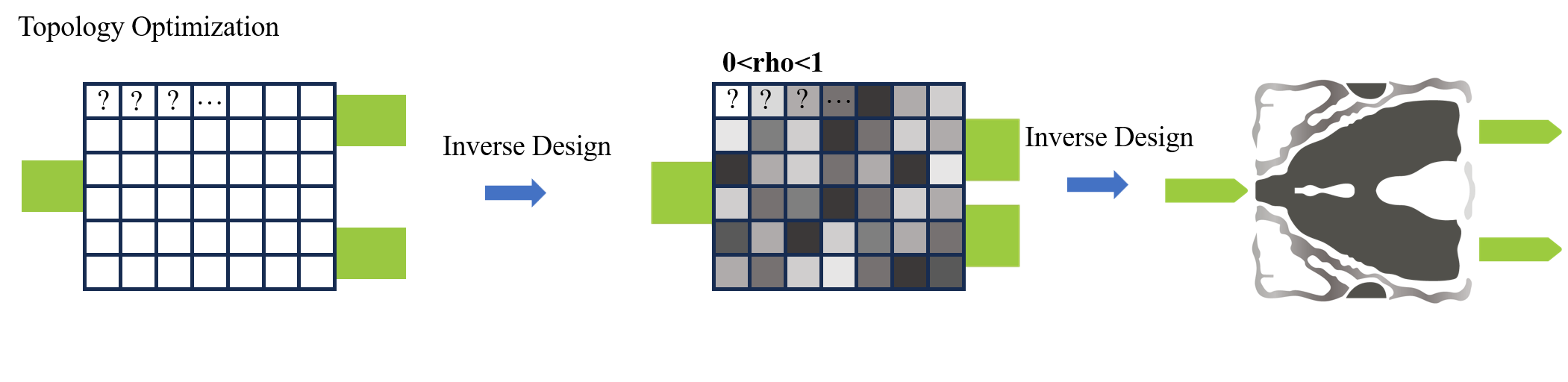 逆设计是一类基于优化算法的自动化结构求解方法,可在高维设计空间中搜索满足目标性能的光子器件结构。随着集成光学器件在复杂度、尺寸及性能指标上的要求不断提高,传统依赖人工经验的设计模式已难以满足需求。逆设计通过数学优化加物理仿真的闭环迭代,实现高效、高精度的器件自动设计。